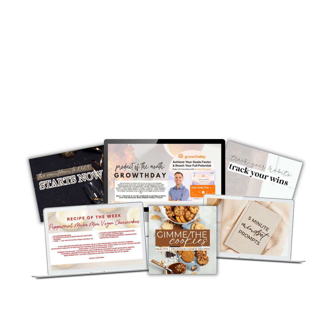 This exclusive members only community is there to answer questions, get support, and help you stay accountable to your goals with monthly live challenges and trainings, and check-ins.