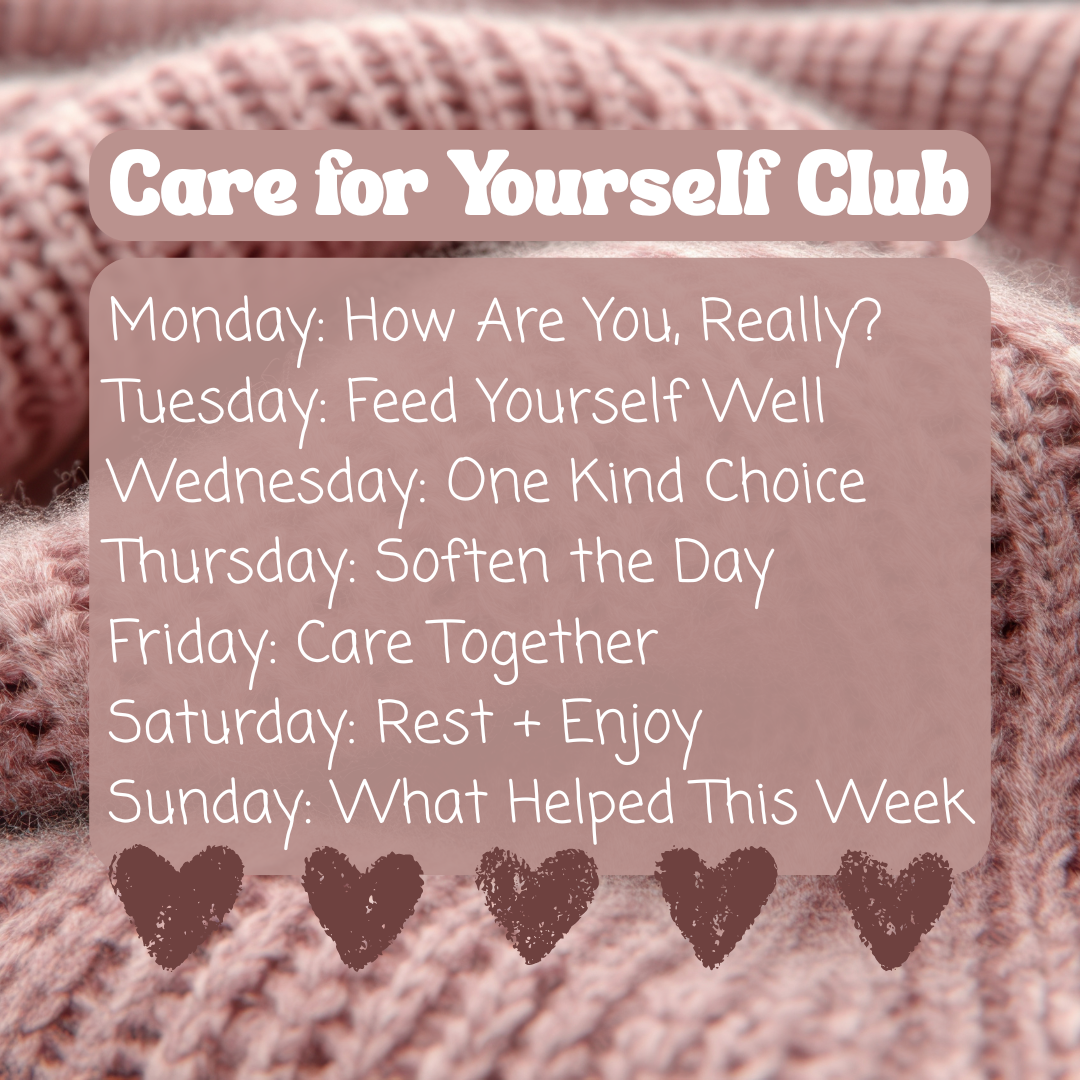 Welcome to Care for Yourself Club đź©· This month is about self-care and self-love in ways that feel supportive, realistic, and actually enjoyable. Small choices that help your days feel steadier. Little moments that remind you to take care of yourself, too.